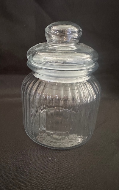 Glass Candy Jar with lid. Approximately 10cm in diameter and 16cm high.
