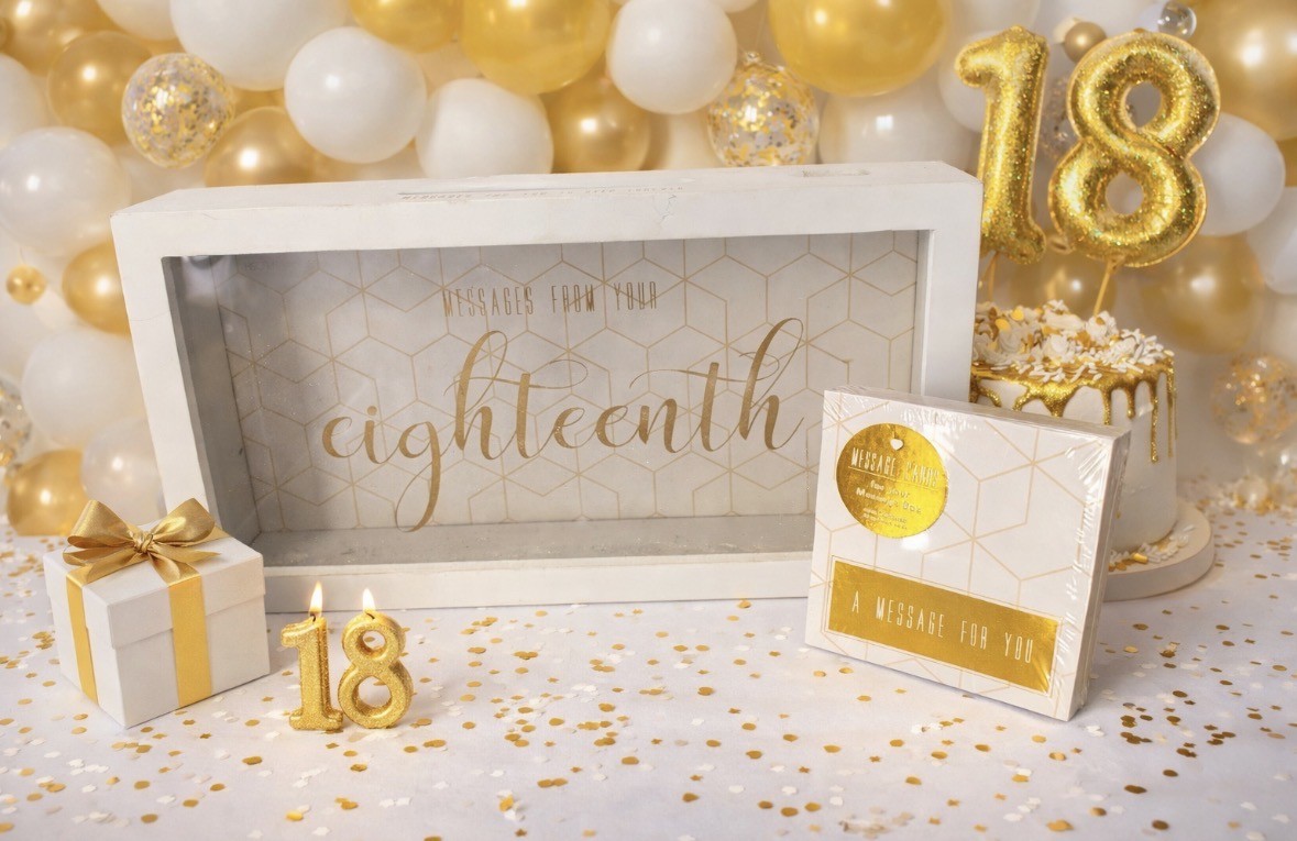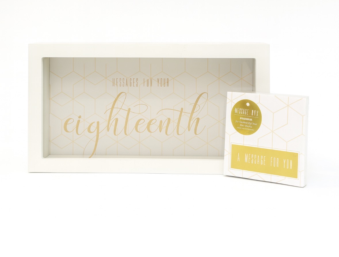 18th Birthday Message Box. Contains 1 x box plus 50 cards for your guest to write on. A beautiful keepsake to treasure forever.