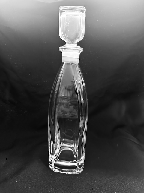 Measures approximately 32cm high and 7.5cm wide at the bottom.  There is a mark around the neck of the decanter where the stopper inserts, but doesn’t affect the use of the product.  Mark has been reflected in the reduced item price.