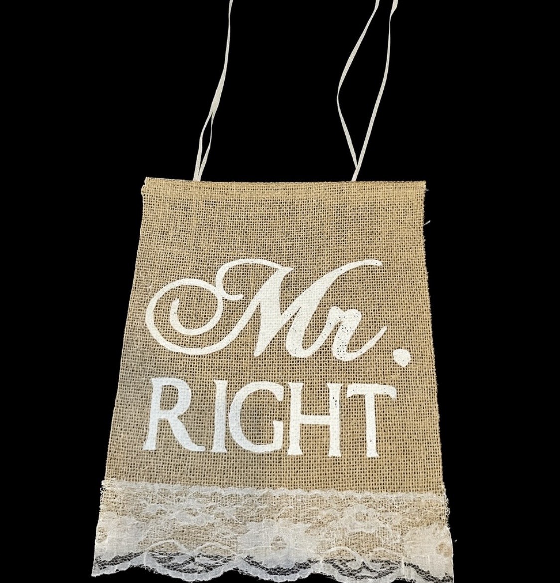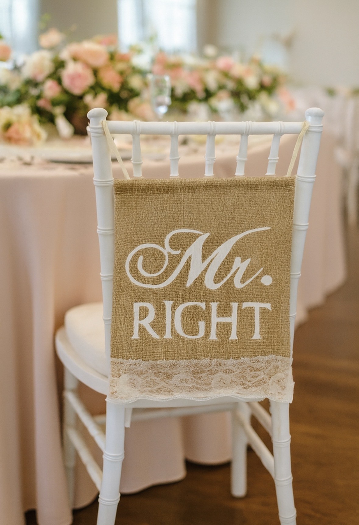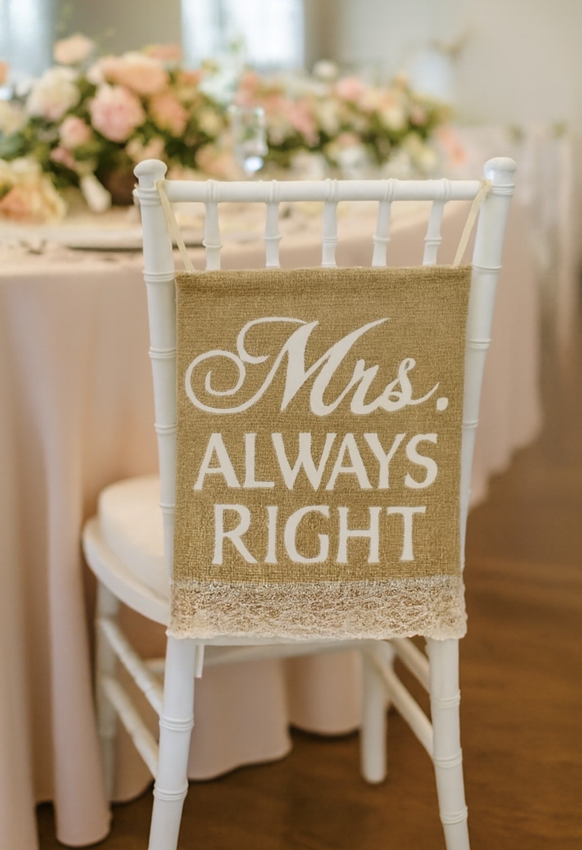 / ‘Mr Right’ and ‘Mrs Always Right’ Hessian Chair Signs