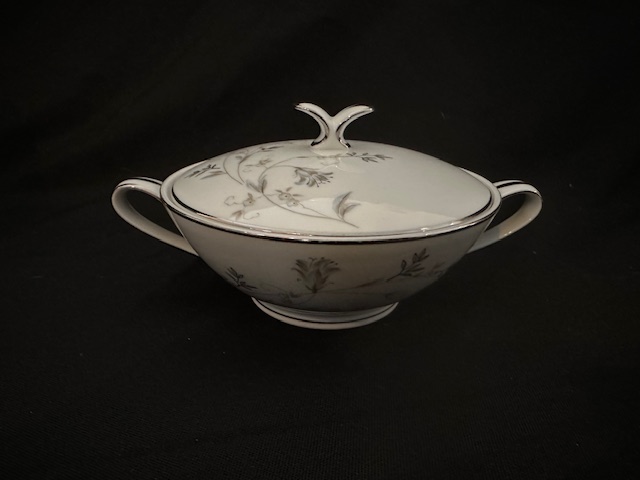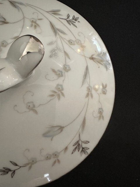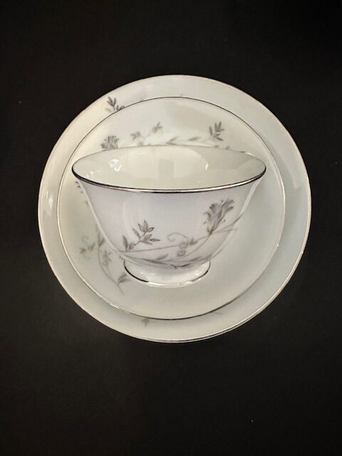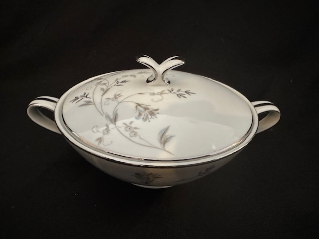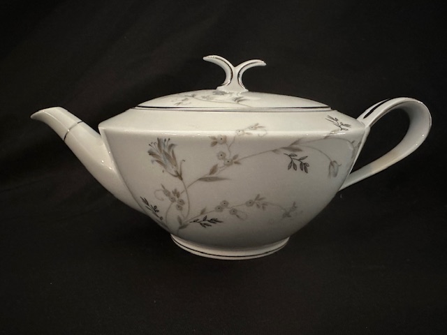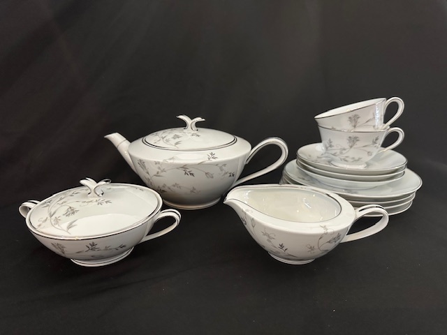 1 x teapot 4 x side bowls 2 x teacups 3 x saucers 1 sugar bowl with lid 1 x milk jug
