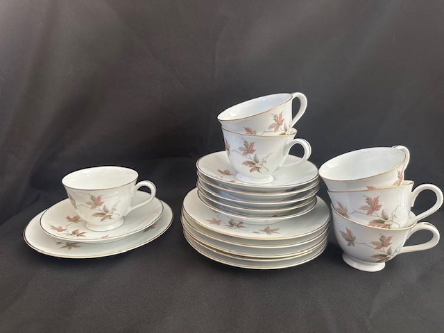 Set of 6 Trios. Set contains 6 x teacups, 6 x saucers and 6 x side plates. Manufactured approximately 1974.