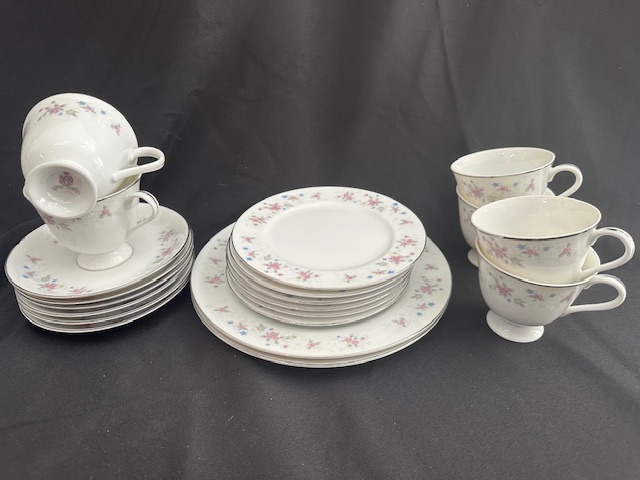 2 x dinner plates 6 x side plates 6 x teacups 6 x saucers