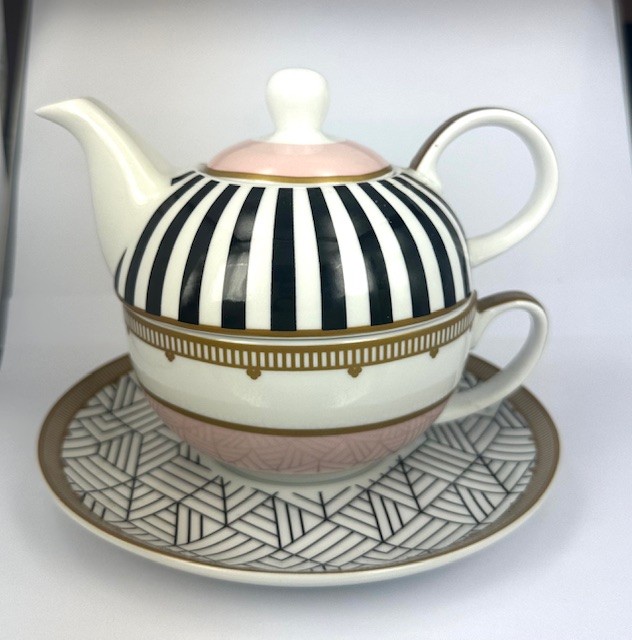 Set contains 1 teapot, 1 teacup + 1 saucer.  Manufactured by Zak Australia.