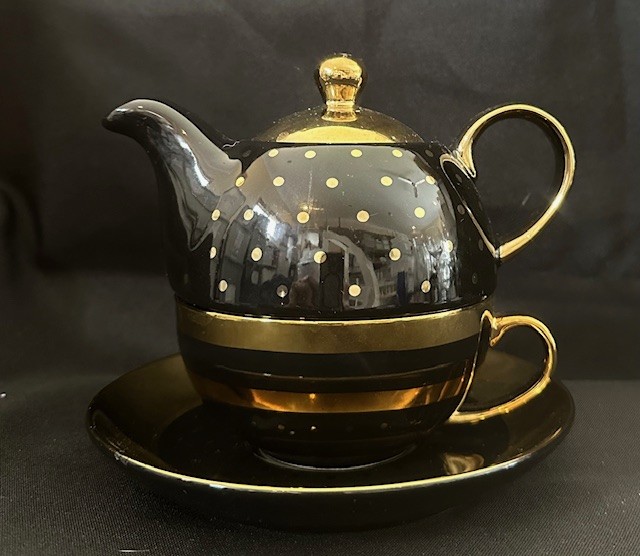 Set contains 1 x teapot, 1 x teacup and 1 x saucer.