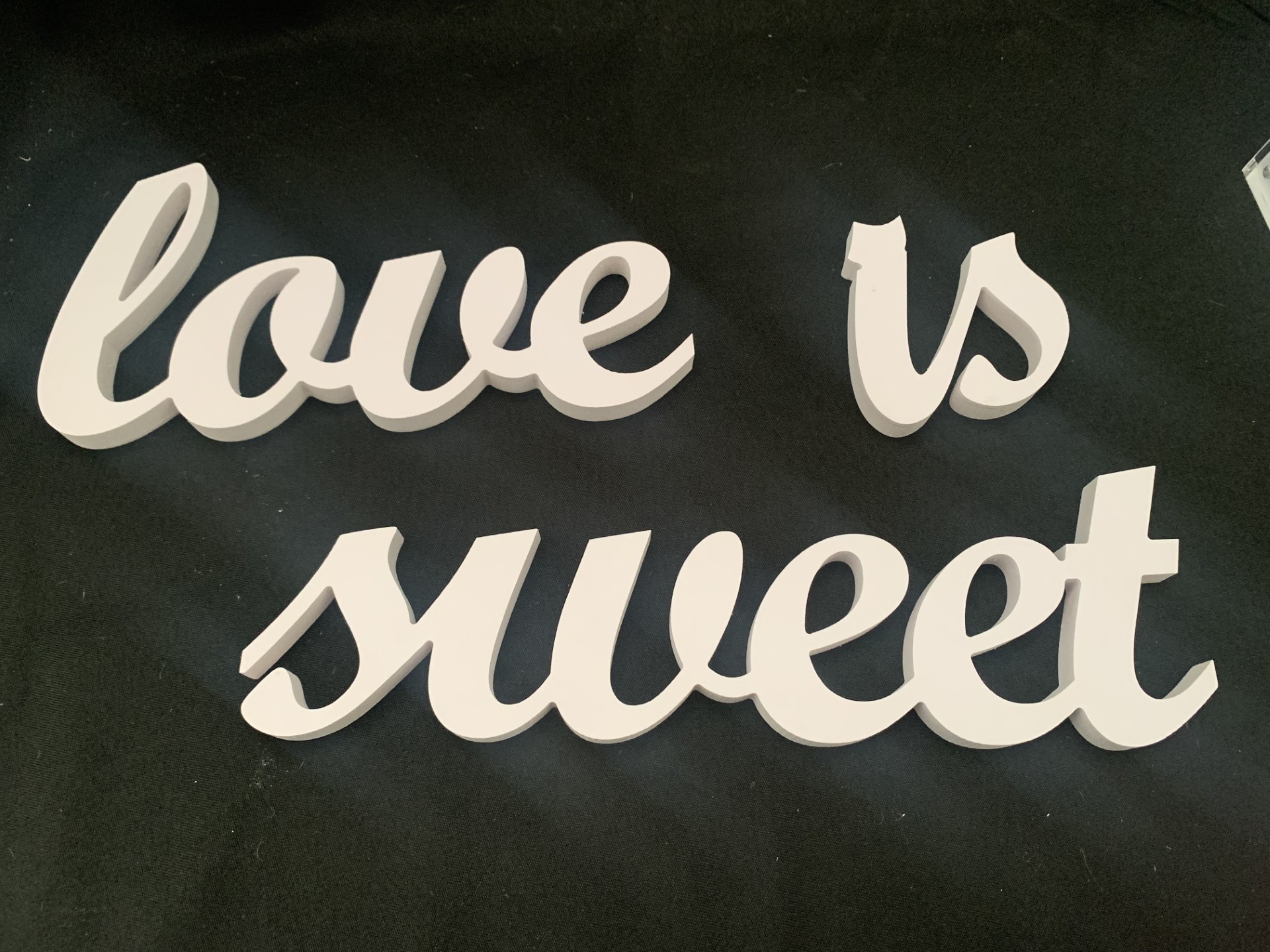 Words can be positioned vertically or horizontally. When horizontally, measures approximately 77cm wide x 13.5cm high x 1.5cm deep.